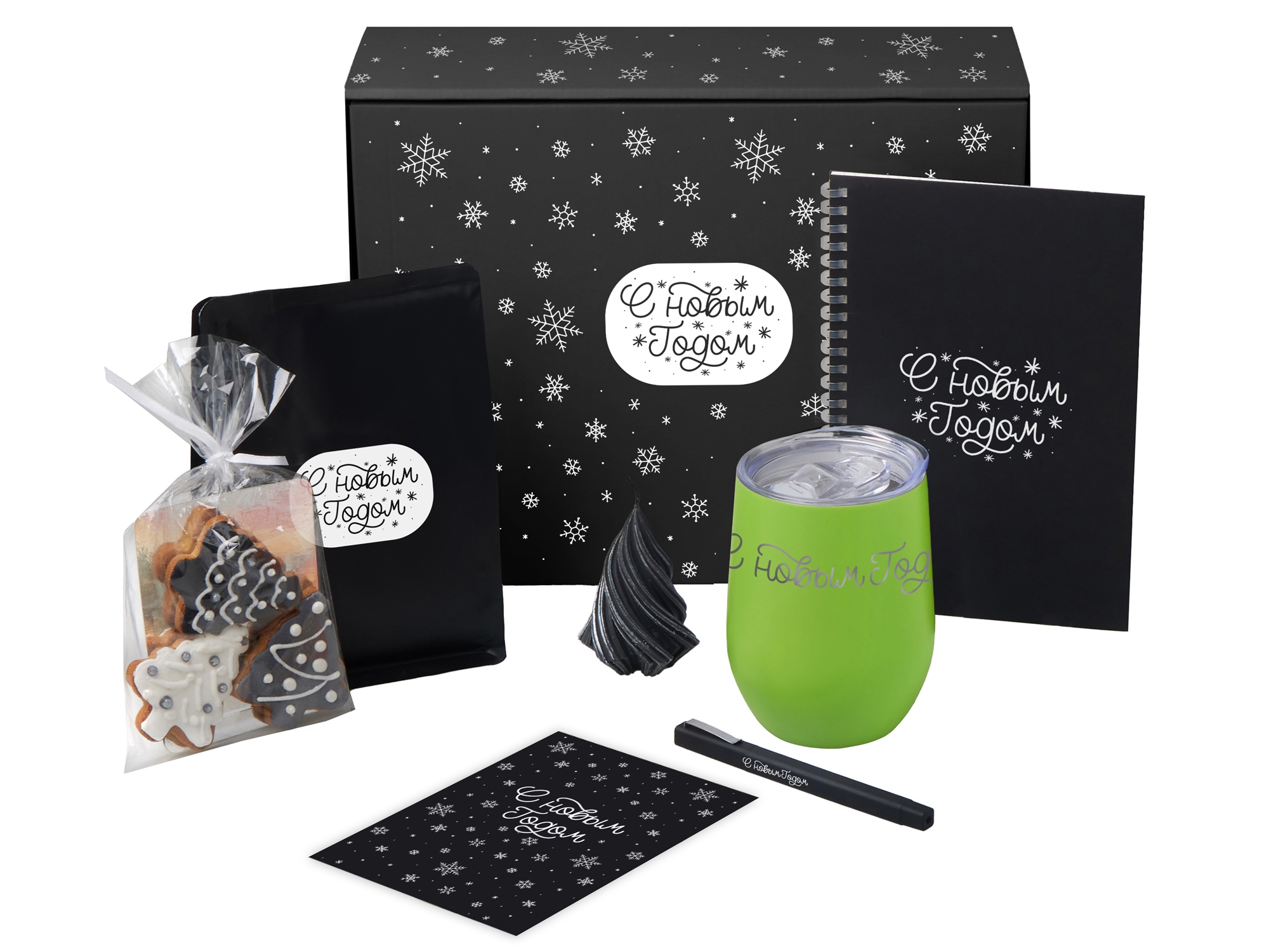 Набор Re:Start - о маленьких ритуалах, которые делают каждый день особенным. Налейте в термокружку любимый ароматный кофе, вдохните аромат и позвольте себе немного тишины. Остановитесь, подумайте, что вы чувствуете и чего хотите. Этот блокнот можно использовать как личный дневник, место для идей, или как рабочий блокнот в новом году — ведь начинать писать с чистого листа всегда особенно приятно. Имбирные пряники добавят сладкую нотку уюта и напомнят: даже в привычных днях можно находить тепло и вдохновение.