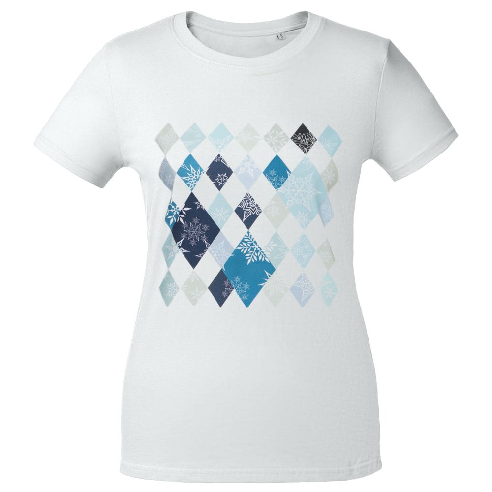Модель : Футболка женская «Ромбо. Первый снег», белая