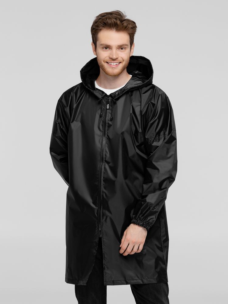Плащ-дождевик из ткани таффета на молнии с капюшоном. Складывается в мешочек — удобно брать с собой.