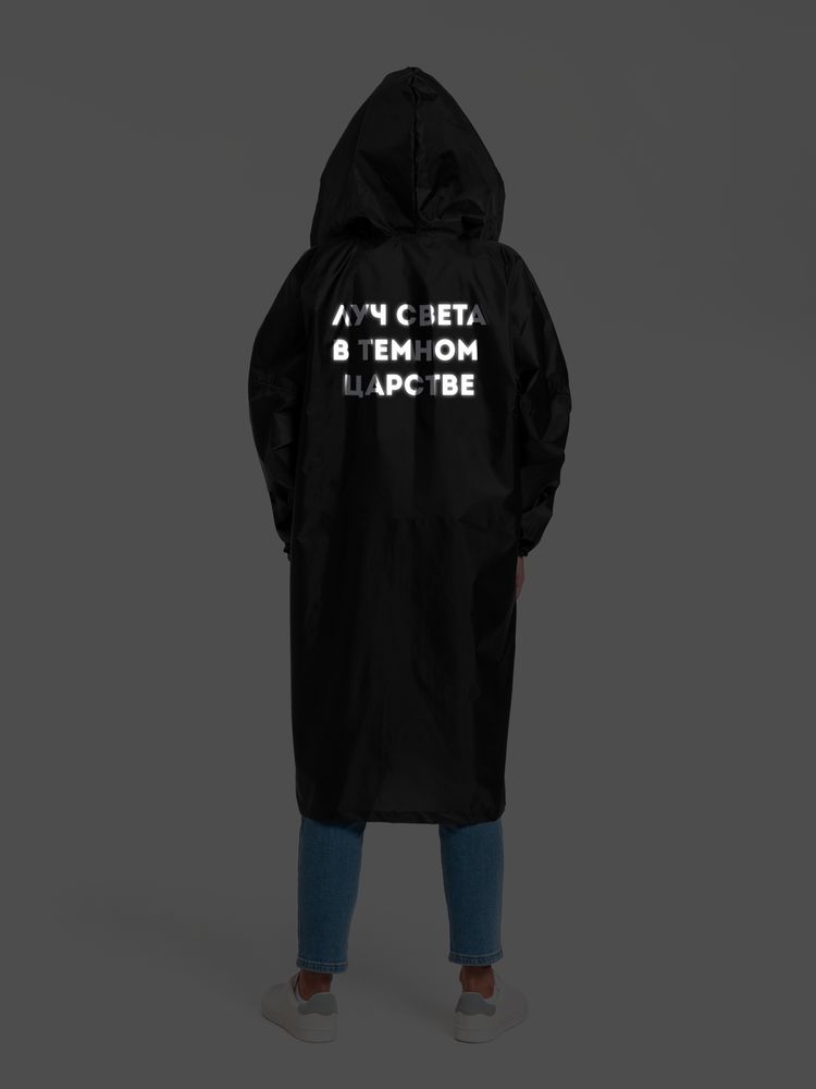 Круто, если ты определился, на чьей ты стороне, но еще круче — привлечь на свою сторону остальных. Ребзя, айда со мной! Го на светлую сторону силы! Дождевик со светоотражающим принтом — Светлых должно быть видно даже в темноте.Плащ-дождевик из ткани таффета на молнии с капюшоном. Складывается в мешочек — удобно брать с собой.