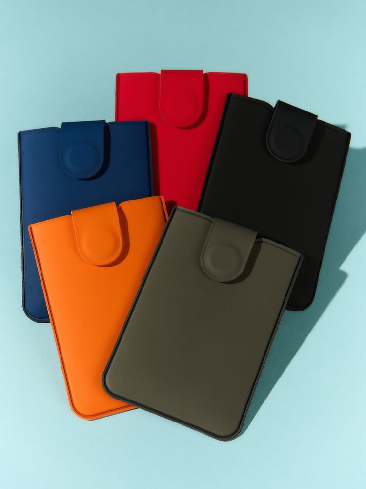 Чехол с выдвижным механизмом на 5 карточек и кармашком на 1 карточку, закрывается на магнит.