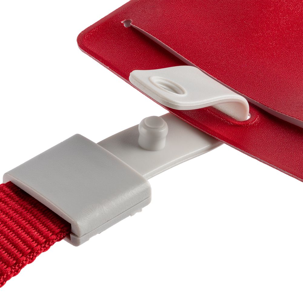 Карман для пропуска крепится к ленте с помощью пластиковой клипсы.