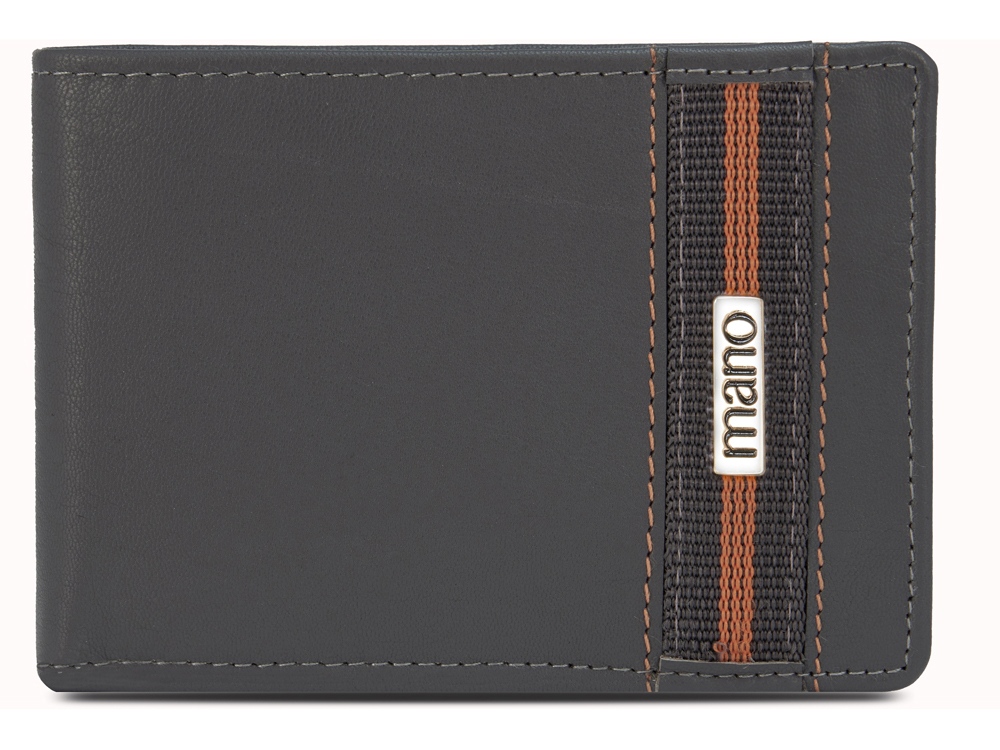 Бумажник Mano Don Leonardo, с RFID защитой, натуральная кожа в сером цвете, 12,5 х 2,5 х 9 см