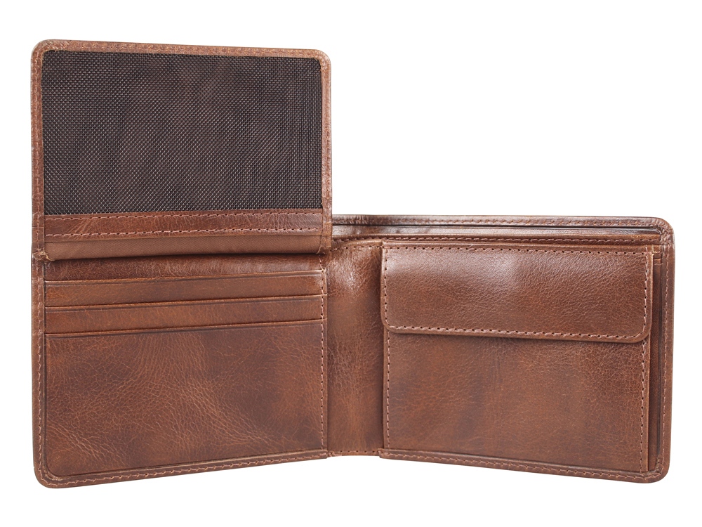 Бумажник изготовлен вручную из натуральной воловьей кожи, обеспечивает удобное и функциональное хранение купюр, кредитных карт и монет.