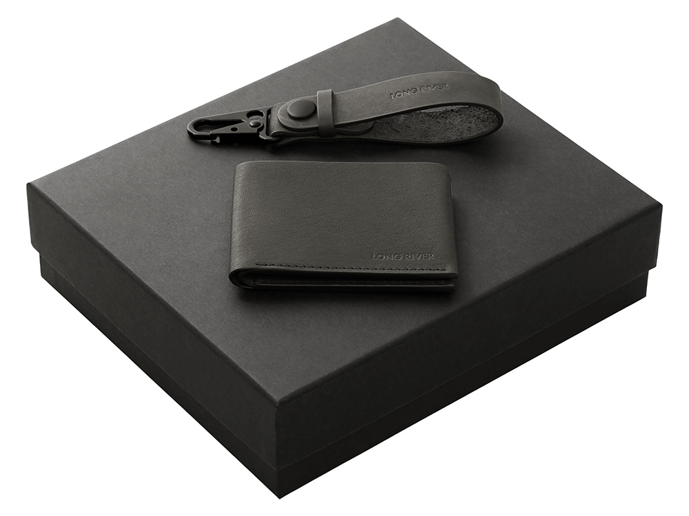 Подарочный набор Long River: кошелек, ремешок для ключей, черная коробка
