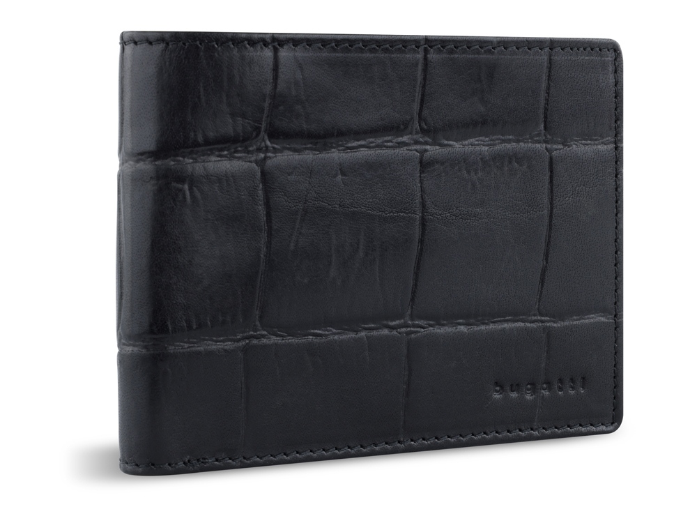 Портмоне BUGATTI Nevio, чёрный, воловья кожа/козья кожа/полиэстер, 12,5х2,5х9,3 см