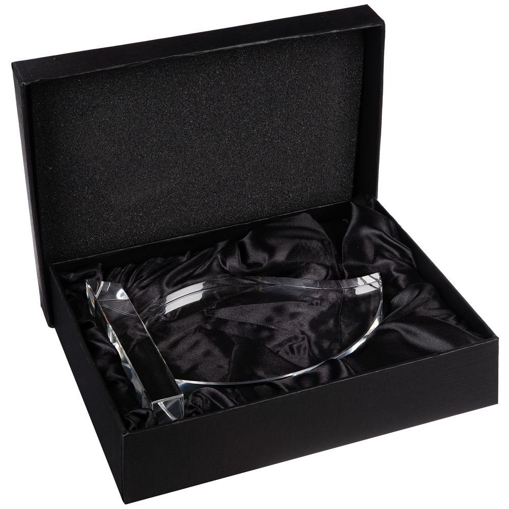Награда изготовлена из стекло К9, в основе которого лежит оптическое боросиликатное стекло. Эту марку стекло отличает низкий процент посторонних включений, высокий показатель преломления и высокая прозрачность — идеальные качества для изготовления наград премиального уровня.