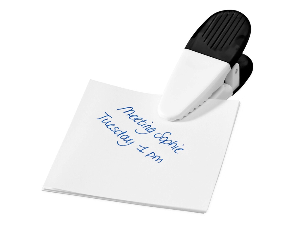 Оригинальный способ напоминания о важных событиях – записать дату и время на листочке и прикрепить его при помощи держателя с магнитом на видной металлической поверхности. Замечательный сувенир для посетителей рекламной кампании. Тампопечать (1 цвет (белые изделия)) на данный товар осуществляется бесплатно. Оплачивается только настройка оборудования в размере 4000 рублей на весь тираж.
