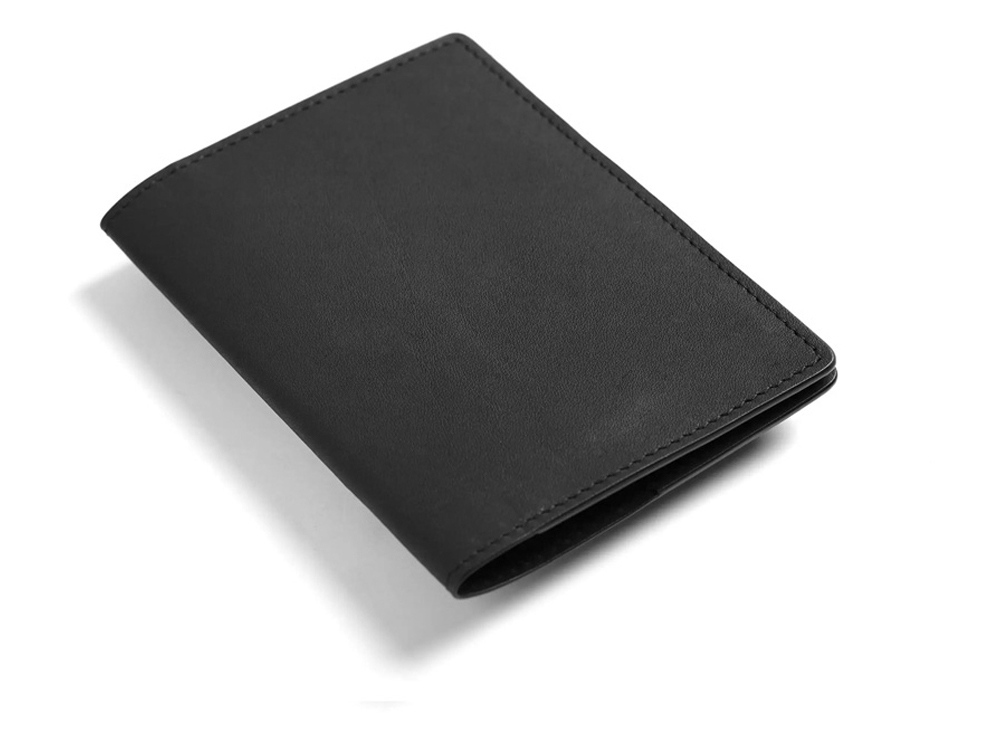 Классическая обложка из дублированной кожи, прокрашенные края, аккуратный шов, прорези для четырёх карт, место для паспорта и документов на машину.