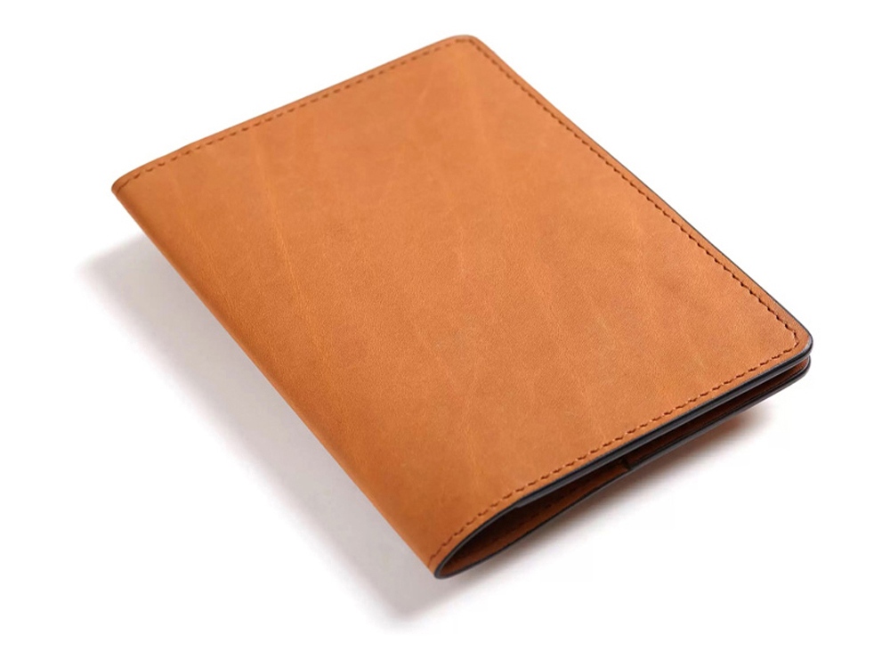 Классическая обложка из дублированной кожи, прокрашенные края, аккуратный шов, прорези для четырёх карт, место для паспорта и документов на машину.