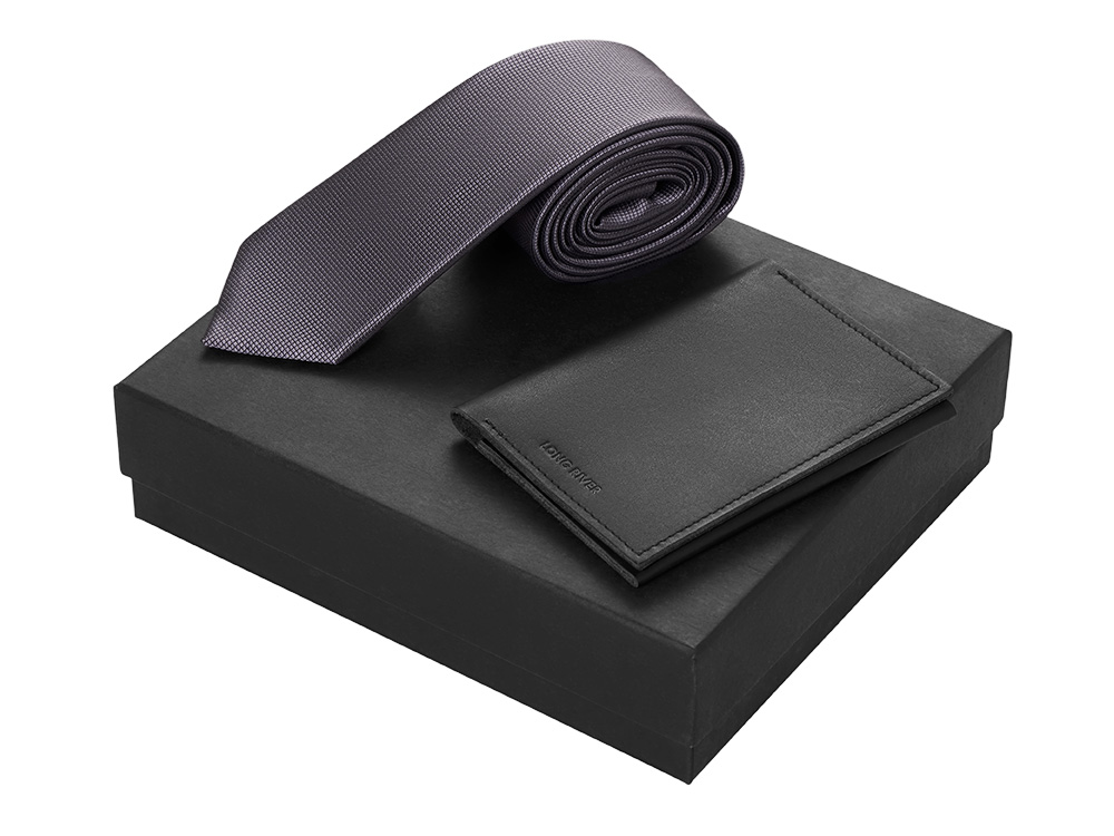Подарочный набор Long River: обложка для паспорта, галстук, черная коробка