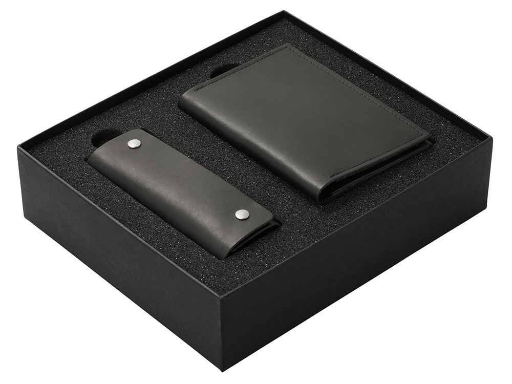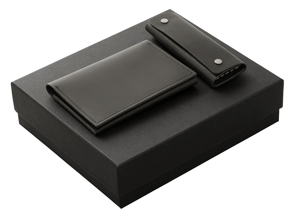 Подарочный набор Long River: обложка для паспорта, ключница (без лого Long River), черная коробка