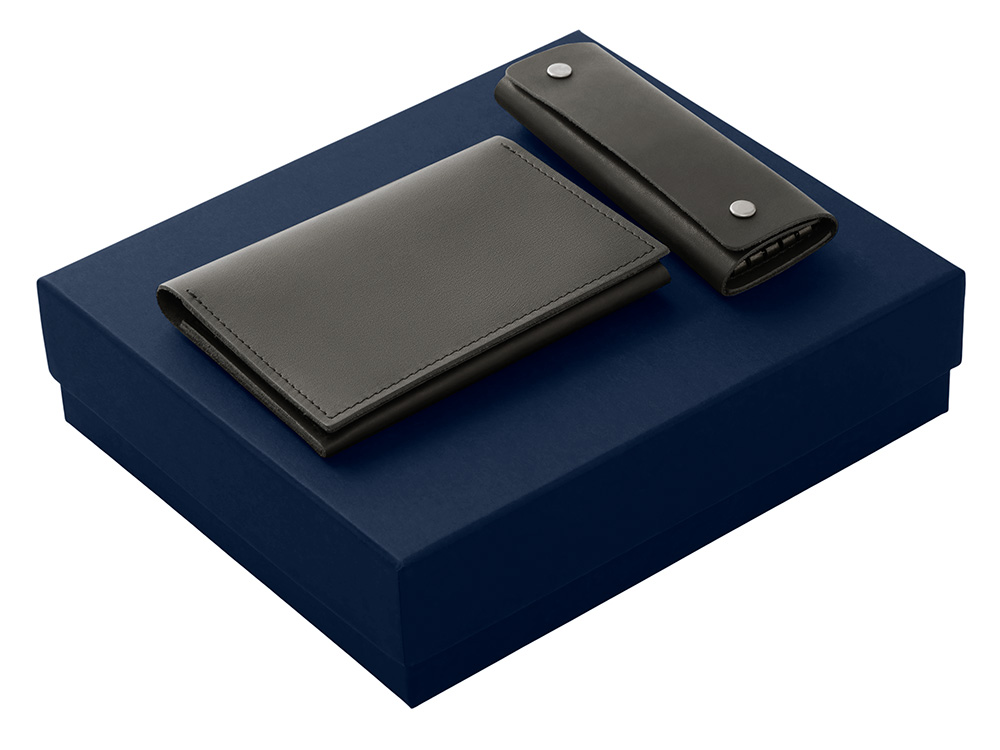 Подарочный набор Long River: обложка для паспорта, ключница (без лого Long River), синяя коробка