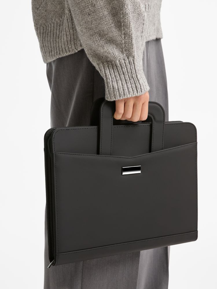 Во вместительной папке предусмотрено множество отделений для визиток, бумаг и письменных принадлежностей — для идеальной организации пространства. Особое преимущество — встроенный блокнот с листами в линейку, который можно легко открепить и положить на его место свои записи, например, для презентаций.