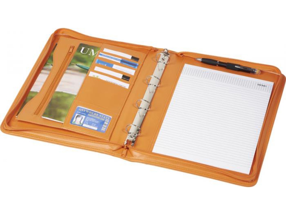 Папка с держателем для ручки, карманами для документов и блокнотом А4 с 20 страницами линованной бумаги. Ручка и принадлежности не включены.