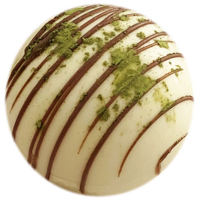 Состав: сфера из белого шоколада, чай матча, маршмеллоу.
