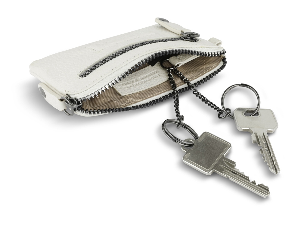 Ключница BUGATTI Elsa, белая, воловья кожа/полиэстер, 12,5х0,5х7 см
