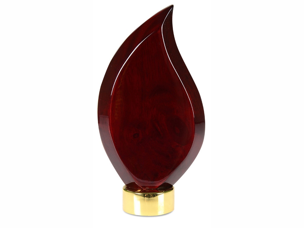 Деревянная плакетка для дарственной надписи в виде языка пламени может стать символичным подарком или знаком отличия для сотрудника нефтяной или газодобывающей компании. На плакетку, а также на металлическую подставку можно нанести символику компании и благодарственную надпись.