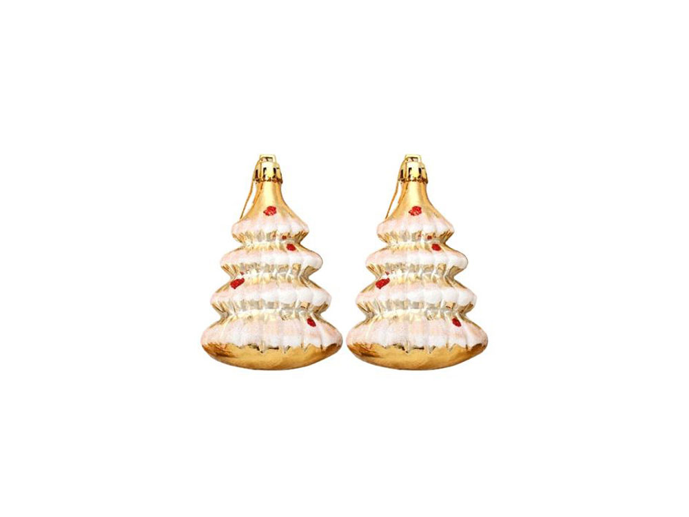 Новогоднее подвесное украшение Ёлочки в золоте из полистирола, набор из 2 шт / 8,6x5,8x3,2см