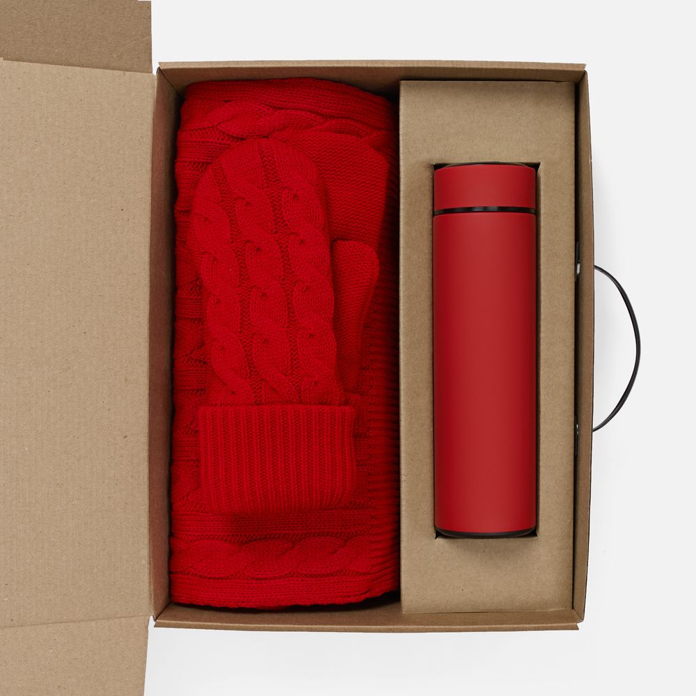акрил 100%, коробка - микрогофрокартон, микрогофрокартон, нержавеющая сталь, покрытие софт-тач, термос - нержавеющая сталь, 304, шарф, варежки - акрил 100%