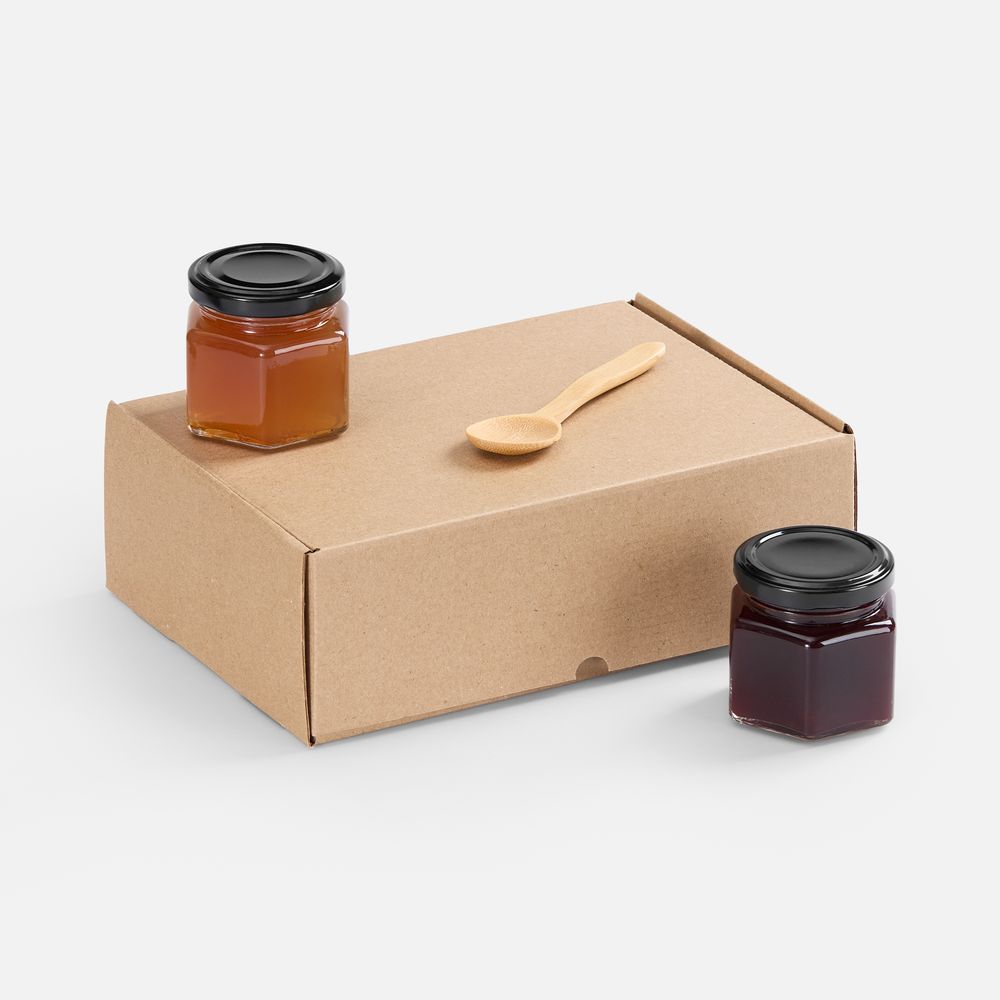 бамбук, баночки - стекло, жесть, коробка - микрогофрокартон, ложка - бамбук, микрогофрокартон, стекло