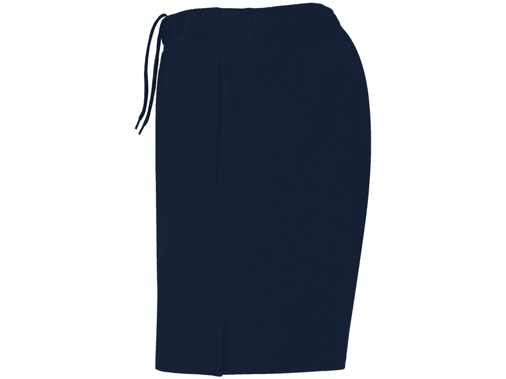 Спортивные шорты из двух видов полотен  с подкладкой - трусами. Эластичный пояс с контрастным внутренним шнурком. Лампасы по бокам из дышащей ткани. Два карманы по бокам. Асимметричные боковые разрезы внизу.