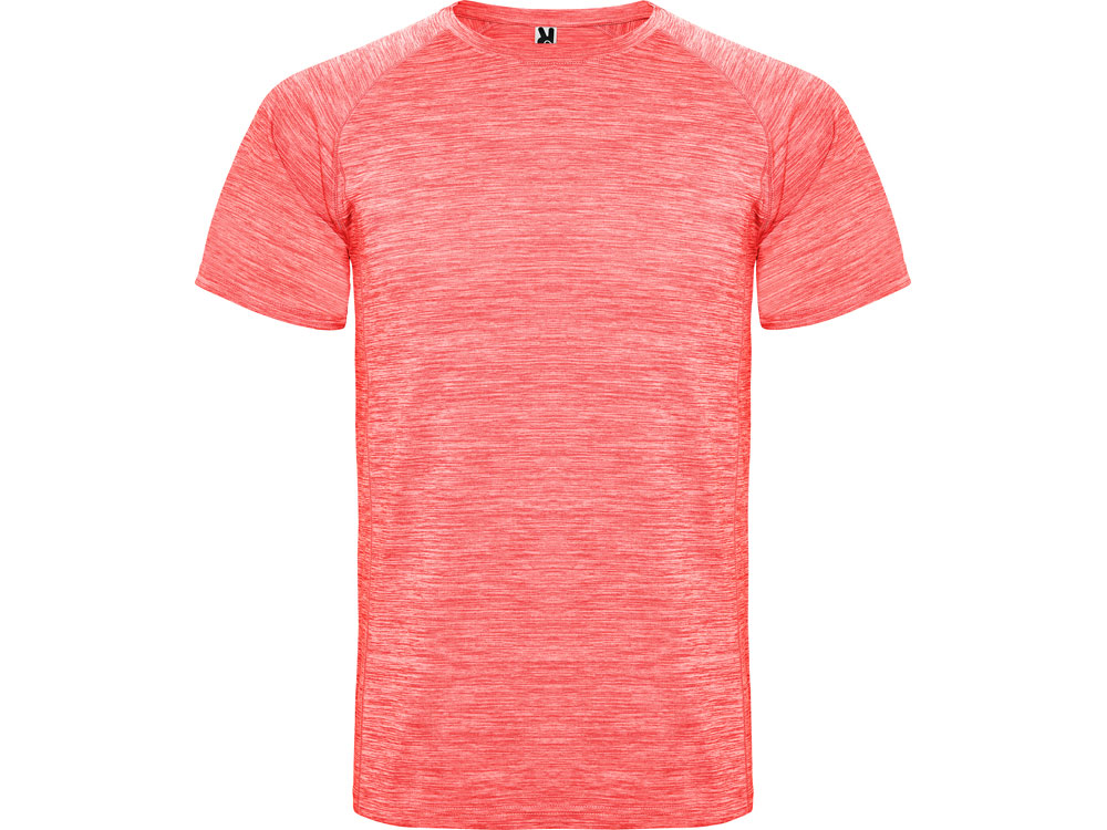 Спортивная футболка из полиэстерового полотна с рукавом реглан. Круглый вырез горловины. Легко сохнущее дышащее полотно с красивым меланжевым эффектом.