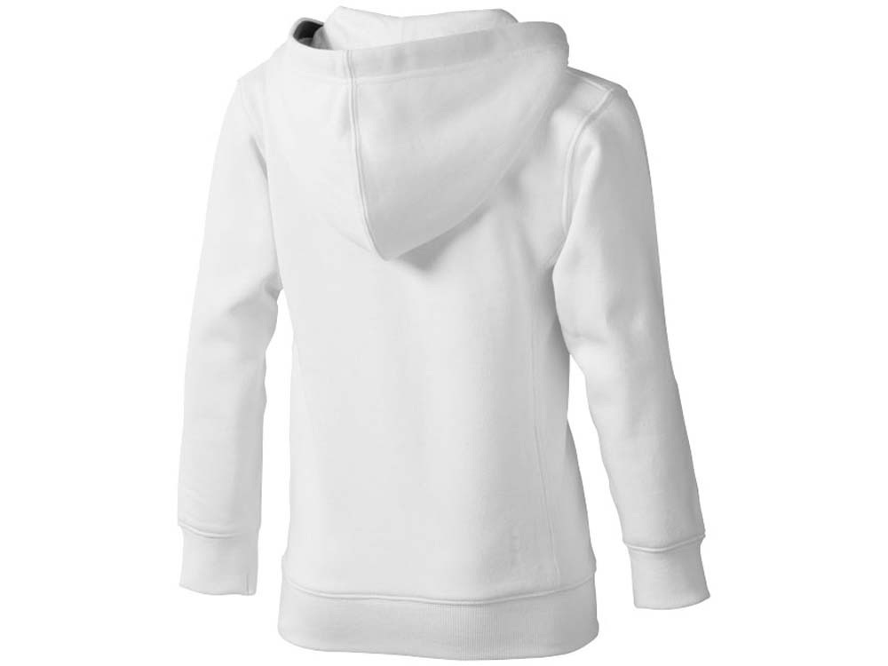 Детский свитер Arora с капюшоном и застежкой-молнией на всю длину. Стандартный покрой. Резинка 2х2 на боковых вставках, поясе и манжетах. Карман кенгуру. Подкладка внутри капюшона. Атласная лента внутри горловины. Принт лого сзади в тон изделия. Серебристые люверсы с лого. Ворсистый внутри для мягкости, тепла и комфорта. Трикотаж: 82% хлопок, 10% вискоза и 8% полиэстер, чесаная внутренняя сторона. 300 г/м². Трафаретная печать (1 цвет (цветные изделия)) на данный товар осуществляется бесплатно. Оплачивается только настройка оборудования в размере 8200 рублей на весь тираж.
