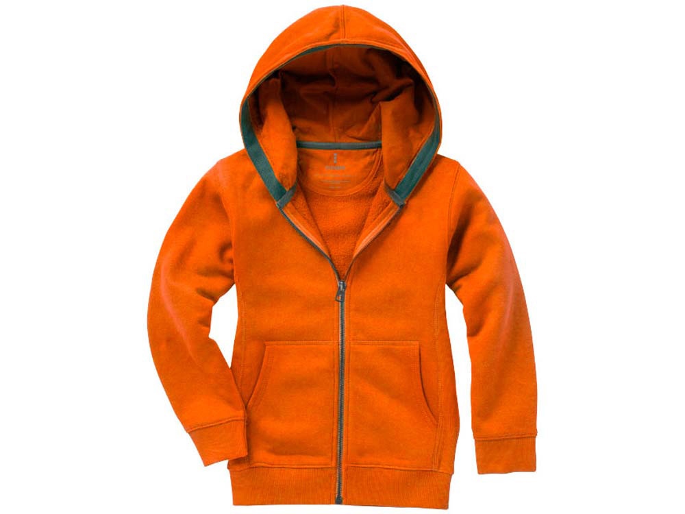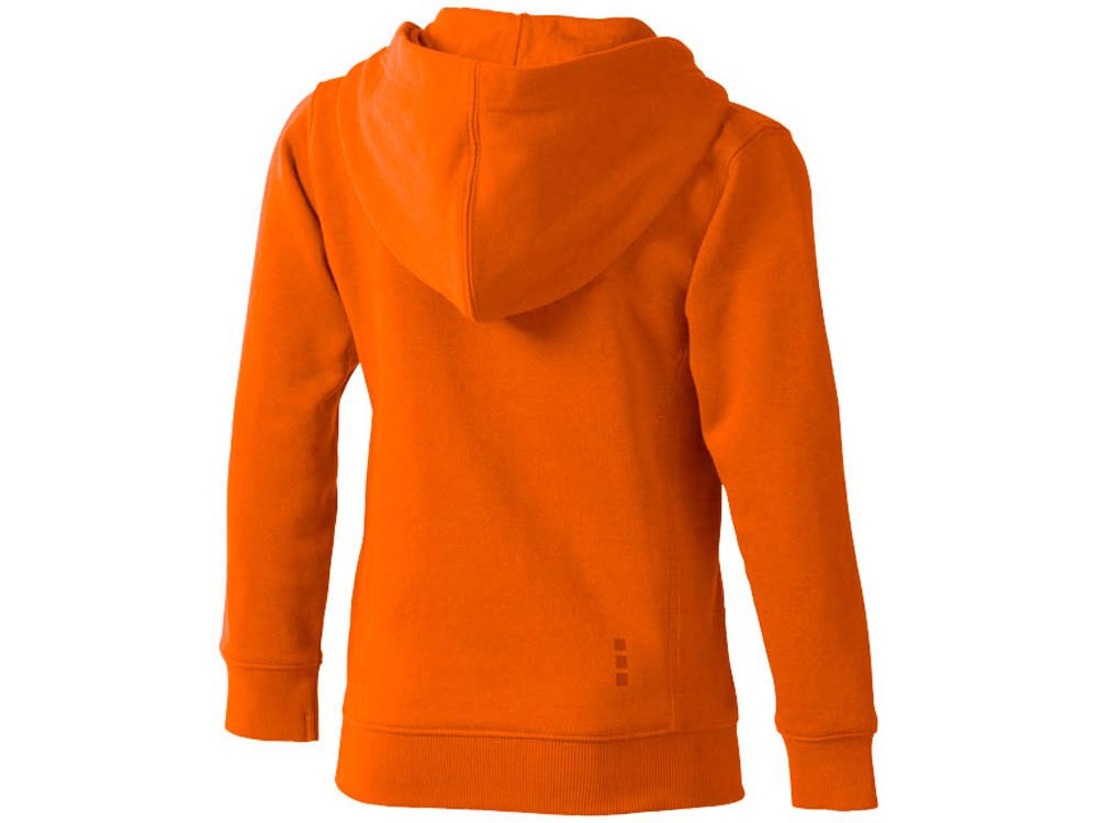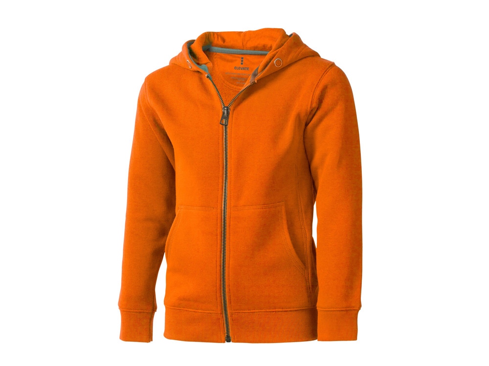 Детский свитер Arora с капюшоном и застежкой-молнией на всю длину. Стандартный покрой. Резинка 2х2 на боковых вставках, поясе и манжетах. Карман кенгуру. Подкладка внутри капюшона. Атласная лента внутри горловины. Принт лого сзади в тон изделия. Серебристые люверсы с лого. Ворсистый внутри для мягкости, тепла и комфорта. Трикотаж: 82% хлопок, 10% вискоза и 8% полиэстер, чесаная внутренняя сторона. 300 г/м². Трафаретная печать (1 цвет (цветные изделия)) на данный товар осуществляется бесплатно. Оплачивается только настройка оборудования в размере 8200 рублей на весь тираж.