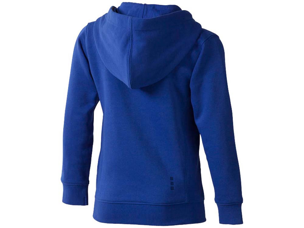 Детский свитер Arora с капюшоном и застежкой-молнией на всю длину. Стандартный покрой. Резинка 2х2 на боковых вставках, поясе и манжетах. Карман кенгуру. Подкладка внутри капюшона. Атласная лента внутри горловины. Принт лого сзади в тон изделия. Серебристые люверсы с лого. Ворсистый внутри для мягкости, тепла и комфорта. Трикотаж: 82% хлопок, 10% вискоза и 8% полиэстер, чесаная внутренняя сторона. 300 г/м². Трафаретная печать (1 цвет (цветные изделия)) на данный товар осуществляется бесплатно. Оплачивается только настройка оборудования в размере 8200 рублей на весь тираж.
