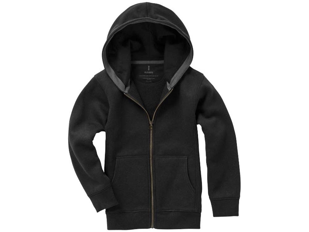 Детский свитер Arora с капюшоном и застежкой-молнией на всю длину. Стандартный покрой. Резинка 2х2 на боковых вставках, поясе и манжетах. Карман кенгуру. Подкладка внутри капюшона. Атласная лента внутри горловины. Принт лого сзади в тон изделия. Серебристые люверсы с лого. Ворсистый внутри для мягкости, тепла и комфорта. Трикотаж: 82% хлопок, 10% вискоза и 8% полиэстер, чесаная внутренняя сторона. 300 г/м². Трафаретная печать (1 цвет (цветные изделия)) на данный товар осуществляется бесплатно. Оплачивается только настройка оборудования в размере 8200 рублей на весь тираж.