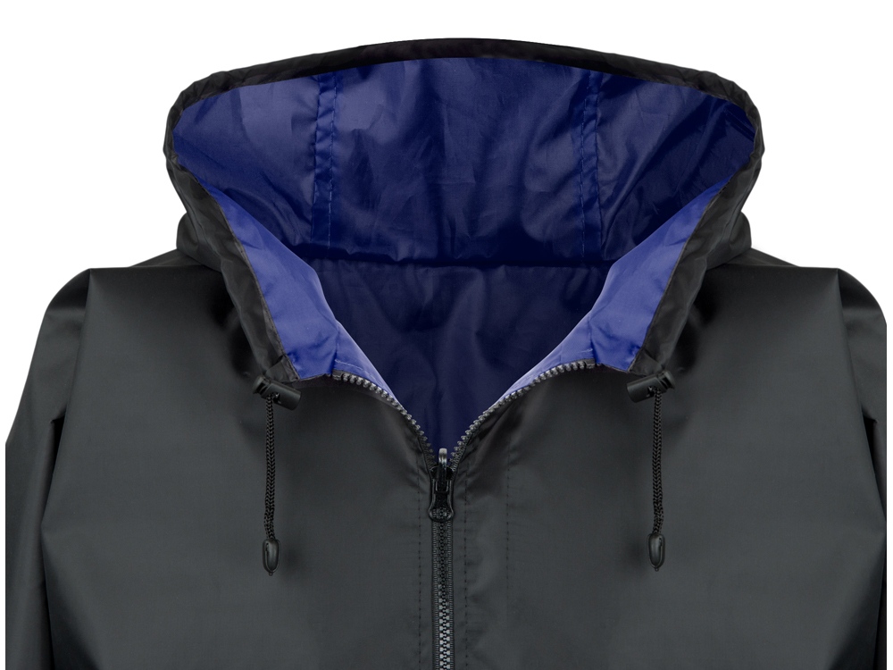 Стильный и практичный дождевик, созданный для активного образа жизни и эффективного промо. Его двусторонний дизайн сочетает простоту и яркость: черная сторона — для повседневной сдержанности, цветная — для привлечения внимания. Изготовлен из легкого, но плотного водоотталкивающего материала, который не теряет форму в непогоду.