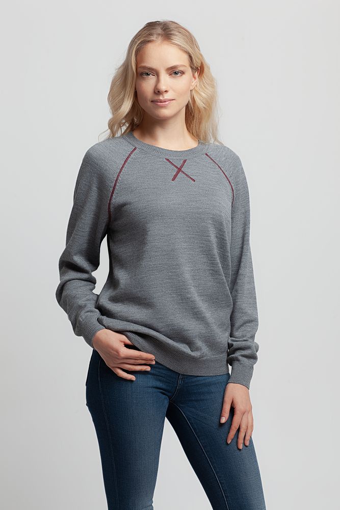 Модель : Джемпер Stitch с контрастной отделкой, серый с бордовым