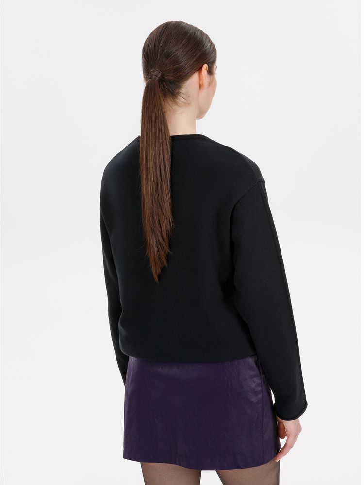 Лонгслив Fuori средней плотности с широким воротом, спущенной линией плеча и свободно подворачивающимися краями по низу, на рукавах и вороте, которые добавляют модели еще большей расслабленности. Прозрачная бирка с логотипом бренда на рукаве не нарушает минималистичности образа.