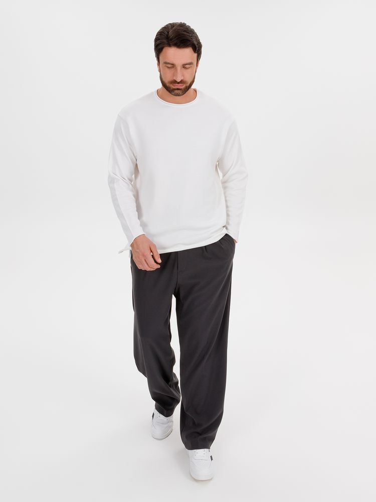 Лонгслив Fuori средней плотности с широким воротом, спущенной линией плеча и свободно подворачивающимися краями по низу, на рукавах и вороте, которые добавляют модели еще большей расслабленности. Прозрачная бирка с логотипом бренда на рукаве не нарушает минималистичности образа.