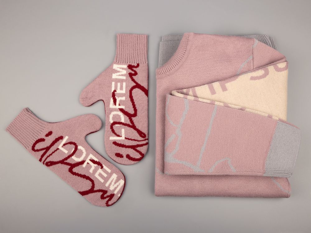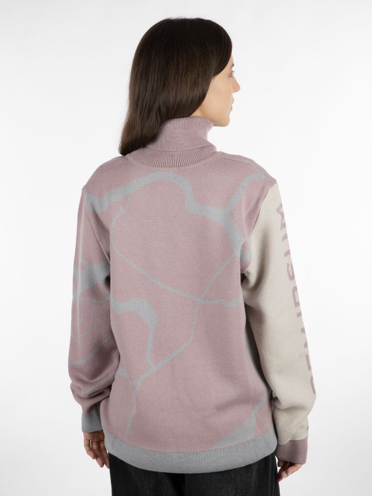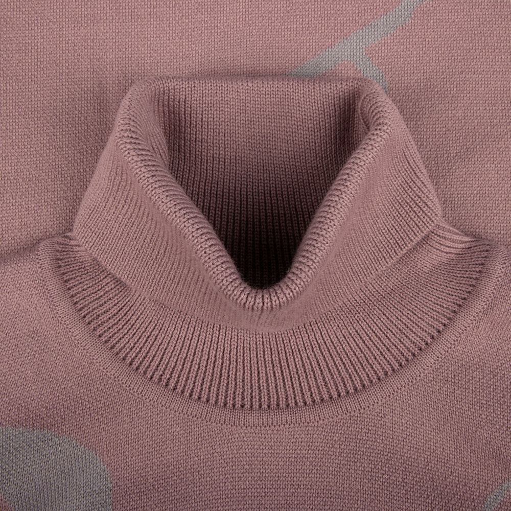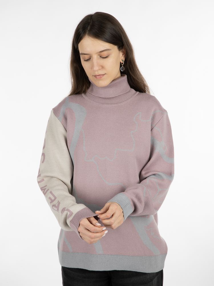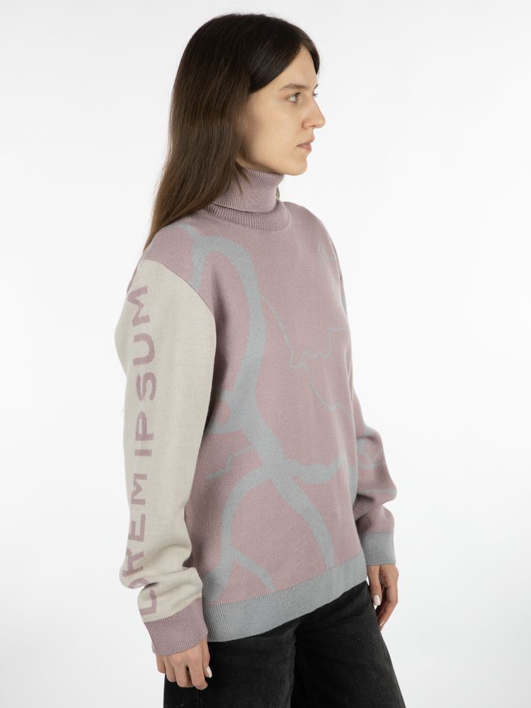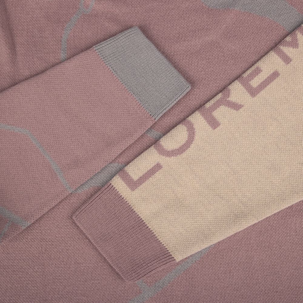Свитер с вывязанным логотипом и индивидуальным рисунком в фирменной цветовой гамме.