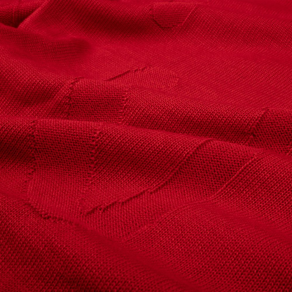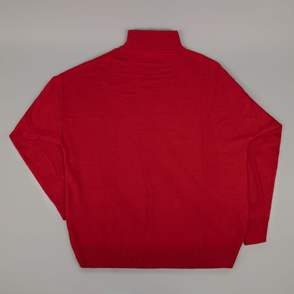 Однотонный свитер с фактурным вывязанным логотипом в фирменном цвете вашей компании.