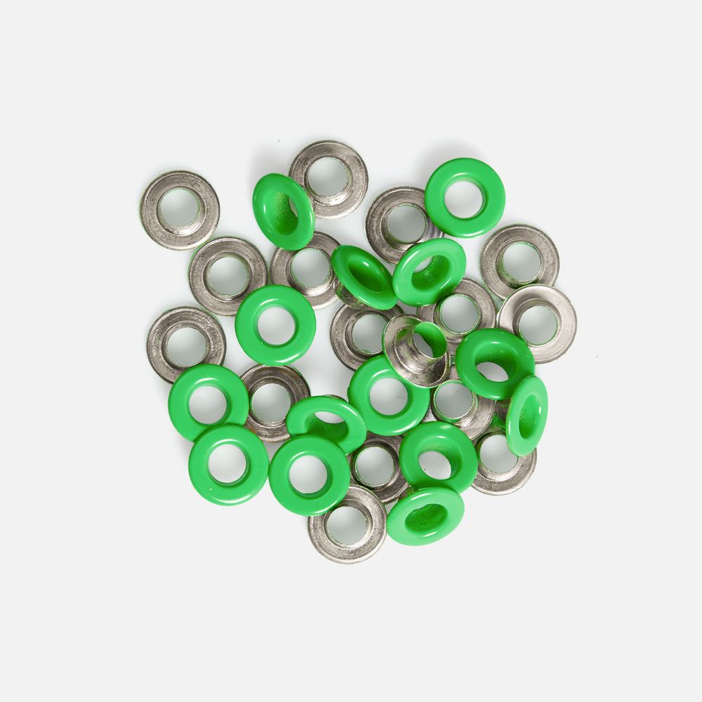 Не подходит для установки на трикотаж. Предназначен для укрепления краев отверстий, используемых для продевания стропы, шнурков, резинки. Легко послужит и элементом дизайна.