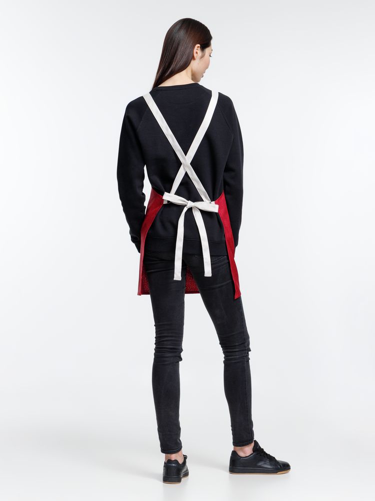 - Фартук с контрастной отделкой и перекрестными регулируемыми лямками