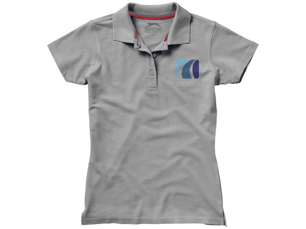 Женская рубашка поло с короткими рукавами Advantage. Прилегающий покрой. Воротник 1х1. Пуговицы с гравировкой. Двухцветная лента внутри на горловине. Принт Slazenger сзади. Пике, 100% хлопок. 160 г/м².