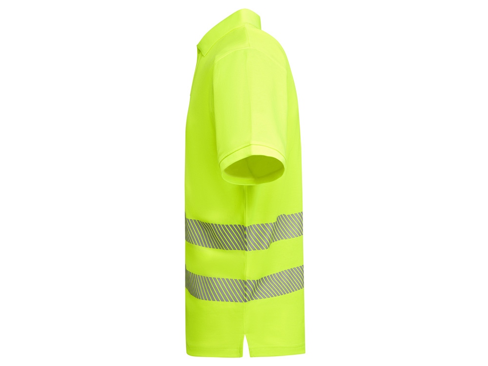 Рубашка поло со светоотражающими элементами с коротким рукавом с воротником в рубчик 1x1. Планка на 3 пуговицы. Две светоотражающие сегментированные полосы на груди. Микс полиэстера и хлопка для повышенной воздухопроницаемости. Дополнительный карман.