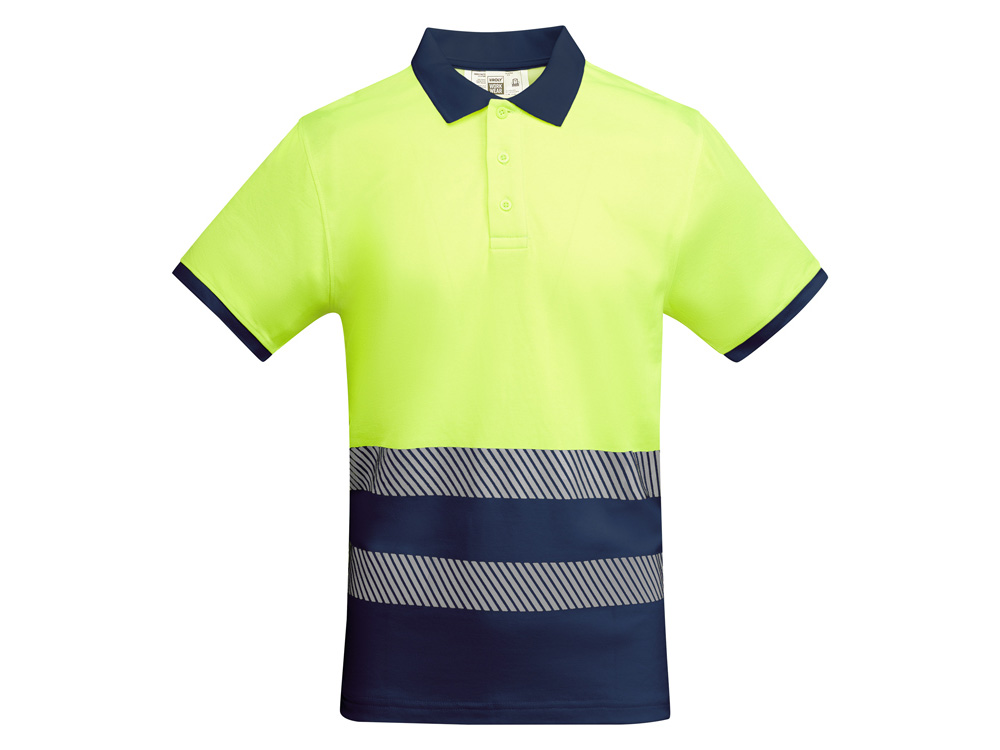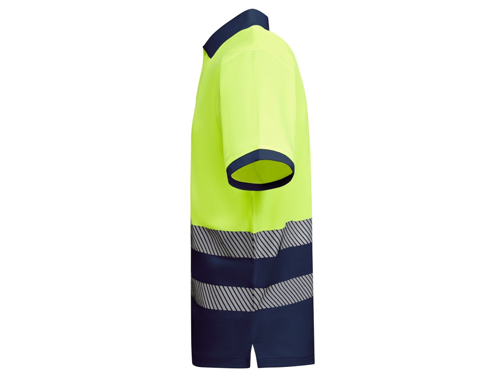 Рубашка поло со светоотражающими элементами с коротким рукавом с воротником в рубчик 1x1. Планка на 3 пуговицы. Две светоотражающие сегментированные полосы на груди. Микс полиэстера и хлопка для повышенной воздухопроницаемости. Дополнительный карман.