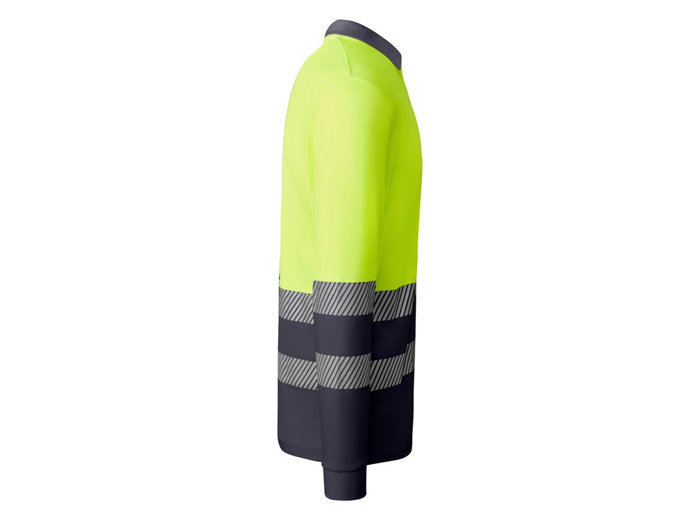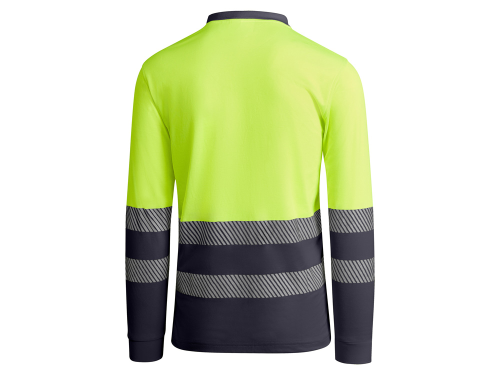 Рубашка поло с длинным рукавом и воротником в рубчик 1x1. Планка с застежкой на 3 пуговицы. Две светоотражающие сегментированные полосы на груди и рукавах. Микс полиэстера и хлопка для повышенной воздухопроницаемости. Дополнительный карман.