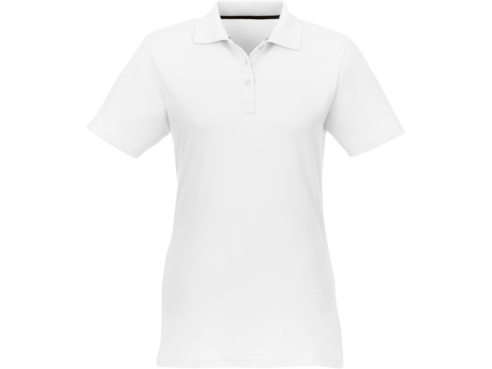 Женское поло Helios с коротким рукавом. Женская модель с разрезами по бокам. Отрезной-отрывной ярлык для комфорта. Воротник гладкой вязкой в рубчик. Планка с тремя пуговицами. Двойная строчка на воротнике и внизу изделия. Пуговицы в цвет изделия. Полоска на горловине в контрастном цвете. Трикотаж Piqué, 100 % хлопок. 180 г/м².