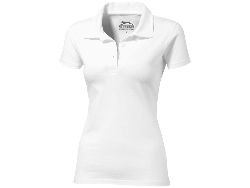Женская рубашка поло с короткими рукавами Let. Прилегающий покрой. Воротник из ткани изделия. Пуговицы с гравировкой. Плоская строчка на пройме. Обшивка внутри воротника. Принт Slazenger сзади. Однослойная джерси, 100% хлопок. 180 г/м². Трафаретная печать (1 цвет (цветные изделия)) на данный товар осуществляется бесплатно. Оплачивается только настройка оборудования в размере 8200 рублей на весь тираж.