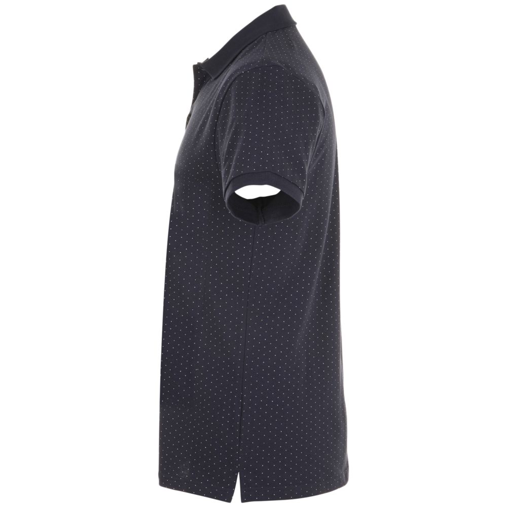 Рубашка поло приталенного силуэта с рисунком в точку. Лейбл производителя в боковом шве изнутри, в шве горловины - только бирка с размером, что позволяет вам нанести свой логотип.
