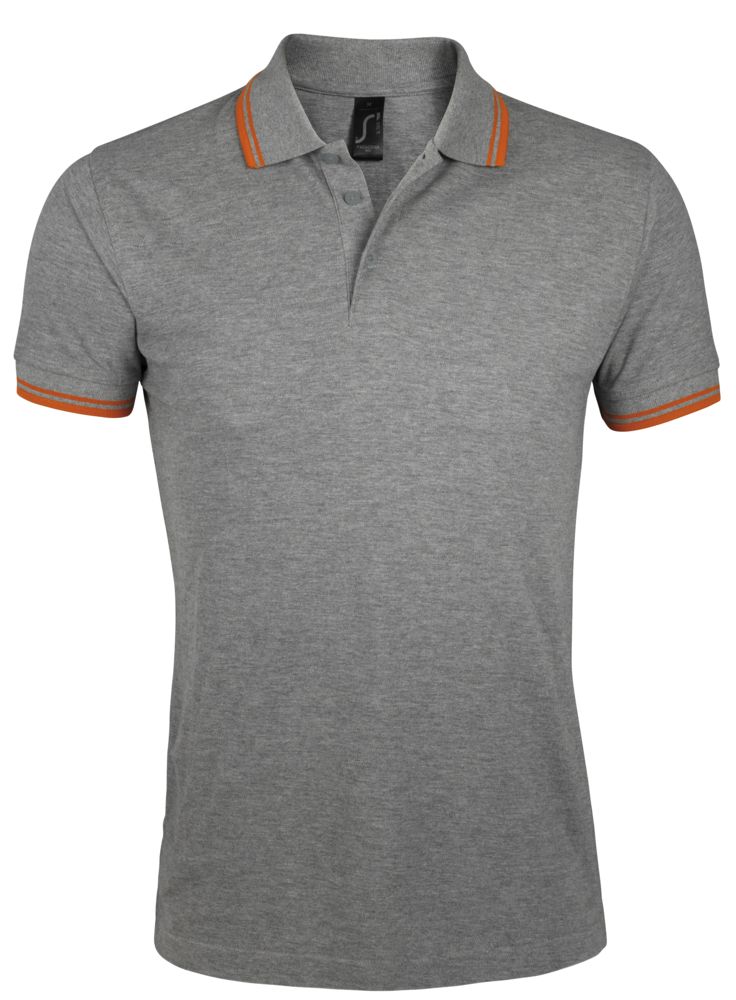 Модель : Рубашка поло мужская Pasadena Men 200 с контрастной отделкой, серый меланж с оранжевым