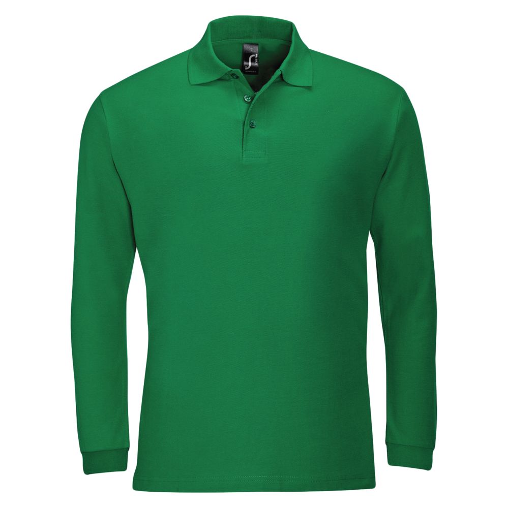 Модель : Рубашка поло мужская с длинным рукавом Winter II 210 ярко-зеленая