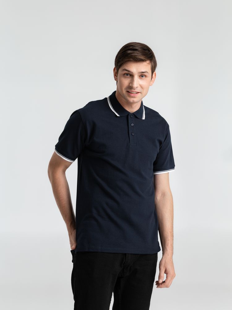 Модель : Рубашка поло мужская с контрастной отделкой Practice 270, темно-синий/белый
