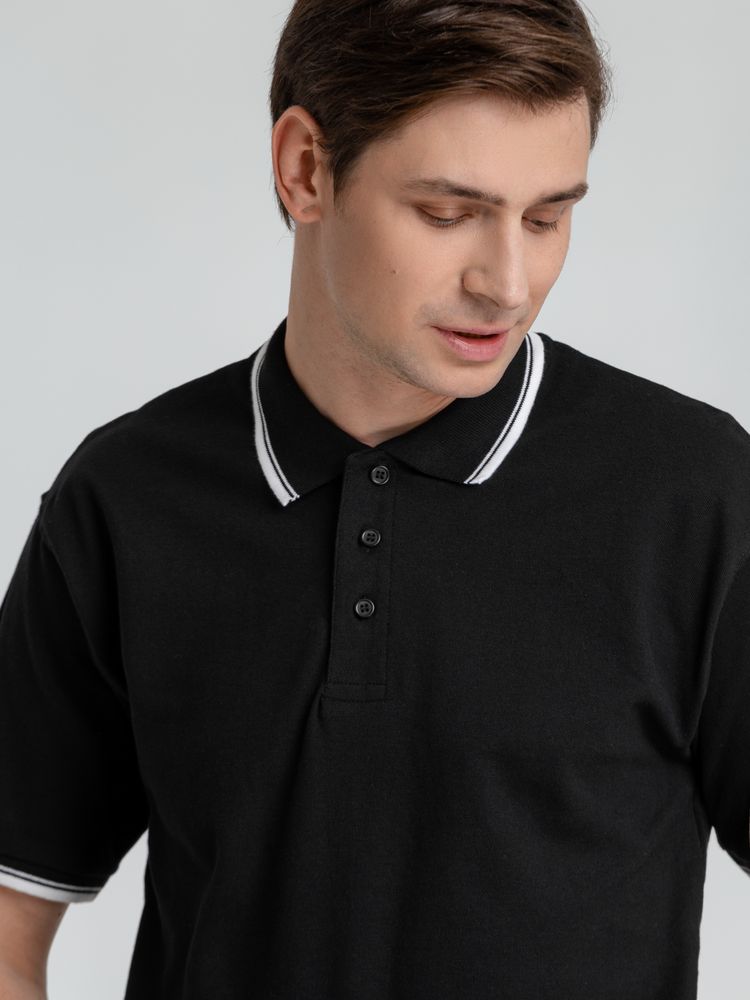 Рубашка поло мужская с контрастной отделкой Practice 270 черная, размер L